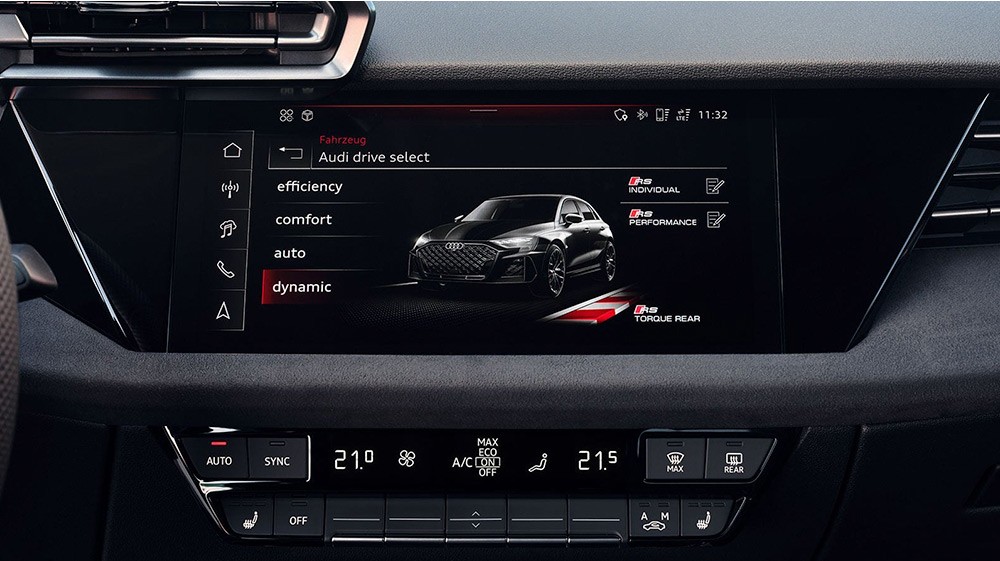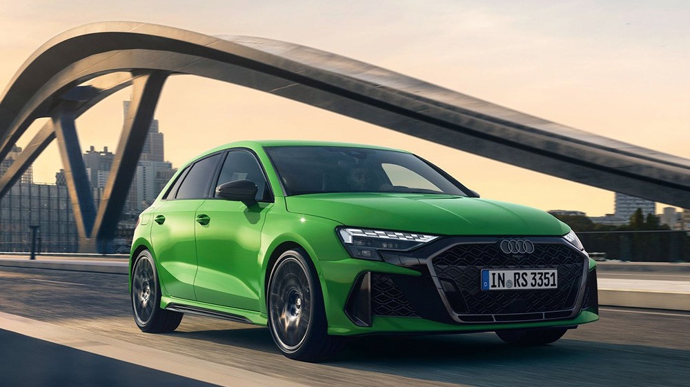 5 silindirli 294 kW TFSI ve maksimum 500 Nm tork sayesinde yeni Audi RS 3 Sportback sadece 3,8 saniyede 100 km/s'ye ulaşır. Dış görünüm olarak, Audi RS 3 Sportback, gücünü, parlak siyah petekli singleframe yapısı ve geniş hava girişleri ile kenarlı etek ile gösterir.